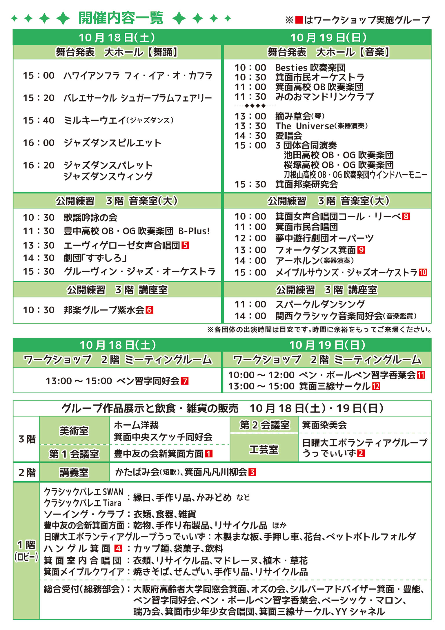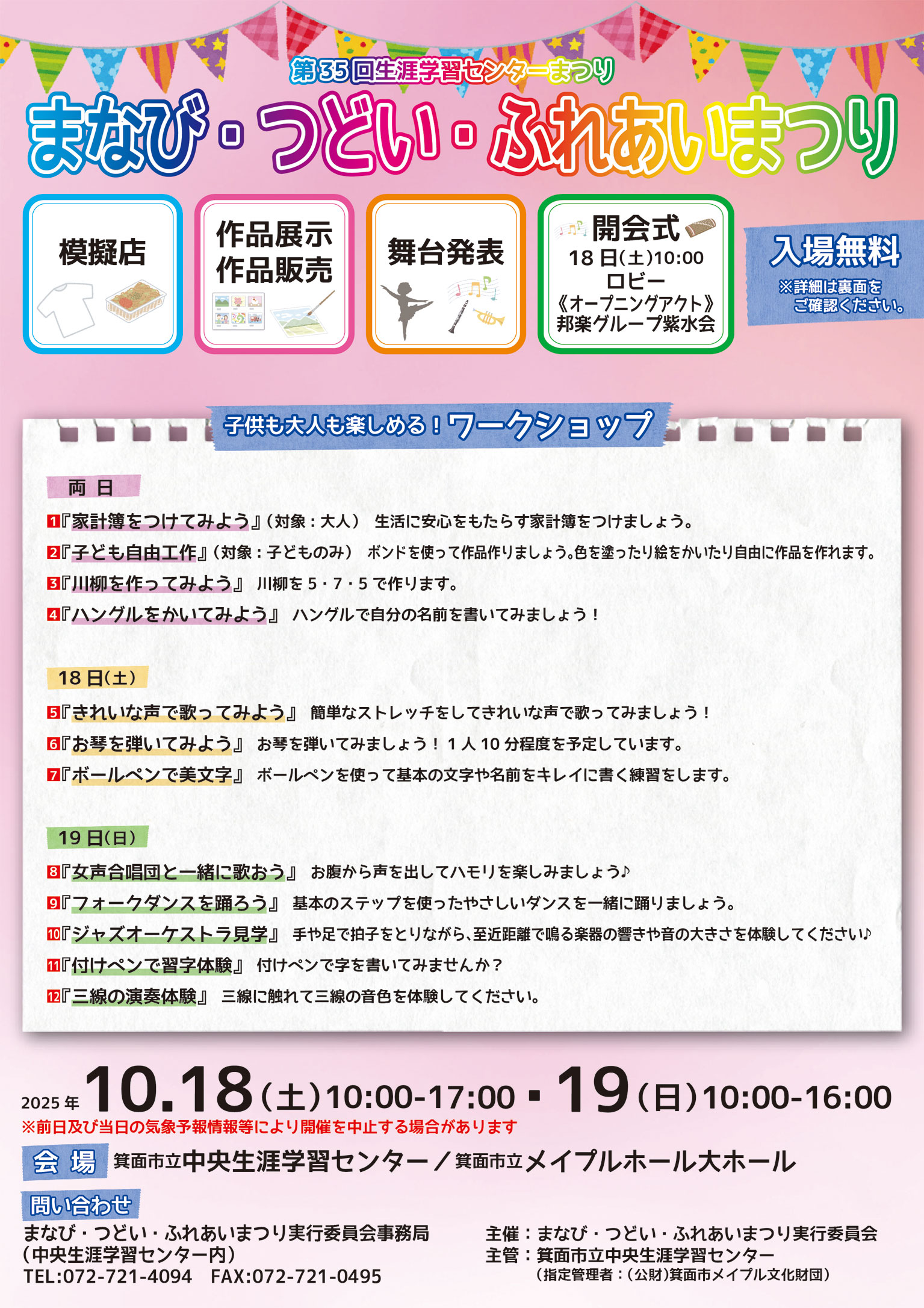 問い合わせ:まなび・つどい・ふれあいまつり実行委員会事務局/中央生涯学習センター内(072-721-4094)