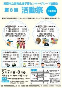 3月7日(土)・8日(日)西南生涯学習センターグループ協議会 第8回 活動祭