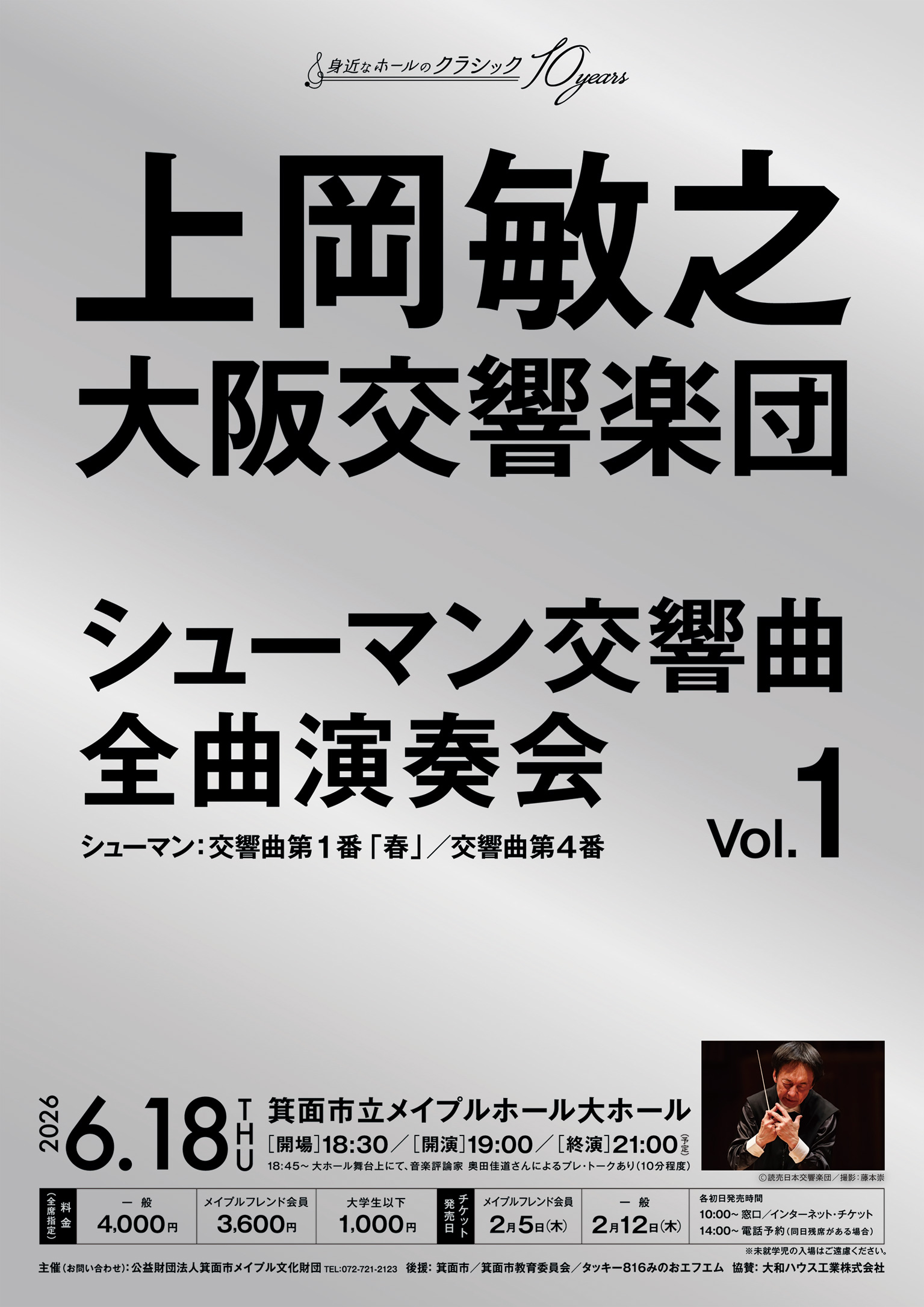 (箕面市立メイプルホール TEL:072-721-2123/受付時間:9:00~17:00/休館日:毎週月曜日(祝日の場合は開館))