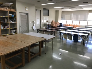 | 備品 | 工芸台2台、机(大)1台、机8台 工芸用椅子24脚 電動ろくろ(木工用・陶芸用各1台)・電動土ひねり機・電動木彫刀研磨機・電動糸鋸(ただし、刃は持参) |