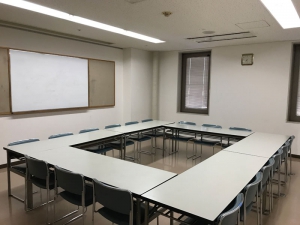 | 備品 | 長机20台、椅子41脚 ホワイトボード2台、スクリーン(天吊り式) 演台(レクチャーアンプ付き) |