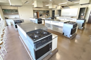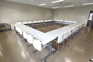| 備品 | 作業机7台(内講師用・障害のあるかた用各1台)、丸椅子40脚 ホワイトボード(はめ込み)流し台、ガスコンロ、オーブンレンジ、その他調理器具 |