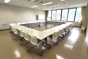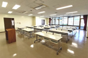 | 備品 | 机27台、椅子245脚 グランドピアノ(別途申込要)、ホワイトボード、演台、ミキサー、照明、鏡(はめ込み)、舞台を出すことができます |